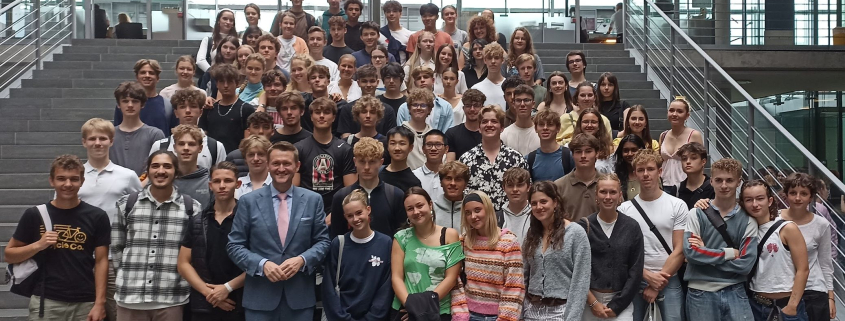 Unsere Fragerunde wurde ziemlich abrupt durch einen sogenannten „Hammelsprung“ unterbrochen. Deshalb konnten wir leider nur wenig über seine persönliche Haltung erfahren. Was wir aber gelernt haben: Als Politiker braucht man wirklich Nerven. Denn Herr Stefinger ist trotz blinkender Lichter, Durchsagen und einem ständig auf die aktuelle Lage im Bundestag gerichteten Blick total entspannt geblieben.