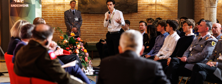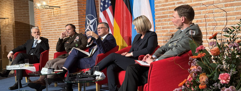 Dort wurden wir von Staatsminister Dr. Florian Herrmann und dem Inspekteur des Heeres, Herrn Generalleutnant Dr. Christian Freuding, begrüßt. Die vom namhaften Politologen Prof. Dr. Carlo Masala geleitete Diskussion ging den Fragen nach, inwiefern Abschreckung nach dem russischen Angriffskrieg auf die Ukraine wieder zu einer zentralen Voraussetzung für Frieden und Sicherheit im euro-atlantischen Raum geworden ist und welche Bedeutung den Landstreitkräften in diesem Zusammenhang zukommt. An diesem interessanten Meinungsaustausch beteiligte sich auch General Christopher Donahue, Kommandeur der United States Army in Europa und Afrika, um die Perspektiven der USA und der NATO einzubringen. Im Anschluss durften wir an einem Empfang teilnehmen, bei dem wir einer Vielzahl der Anwesenden unsere Fragen stellen und mit den Experten aus Politik und Militär ins Gespräch kommen konnten. Das war für uns alle das Highlight der Veranstaltung, da sich viele Militärs und auch Prof. Masala Zeit nahmen, um ausgiebig mit uns zu diskutieren. Insgesamt war dieser Samstagabend für uns alle ein einmaliges und äußerst spannendes Erlebnis!